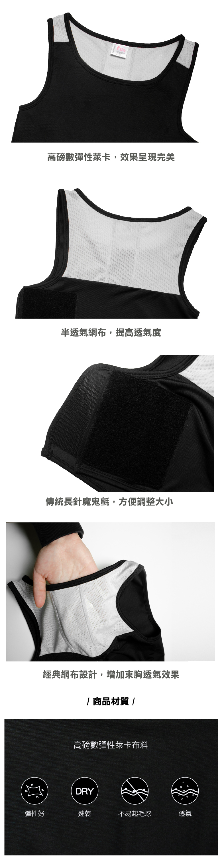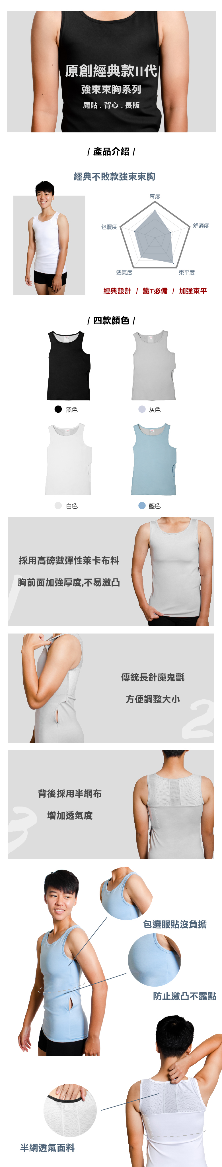 ●嚴選布料全新改良再加上經典網布設計,束胸效果實在透氣效果佳,此款為面面俱到的暢銷極品!