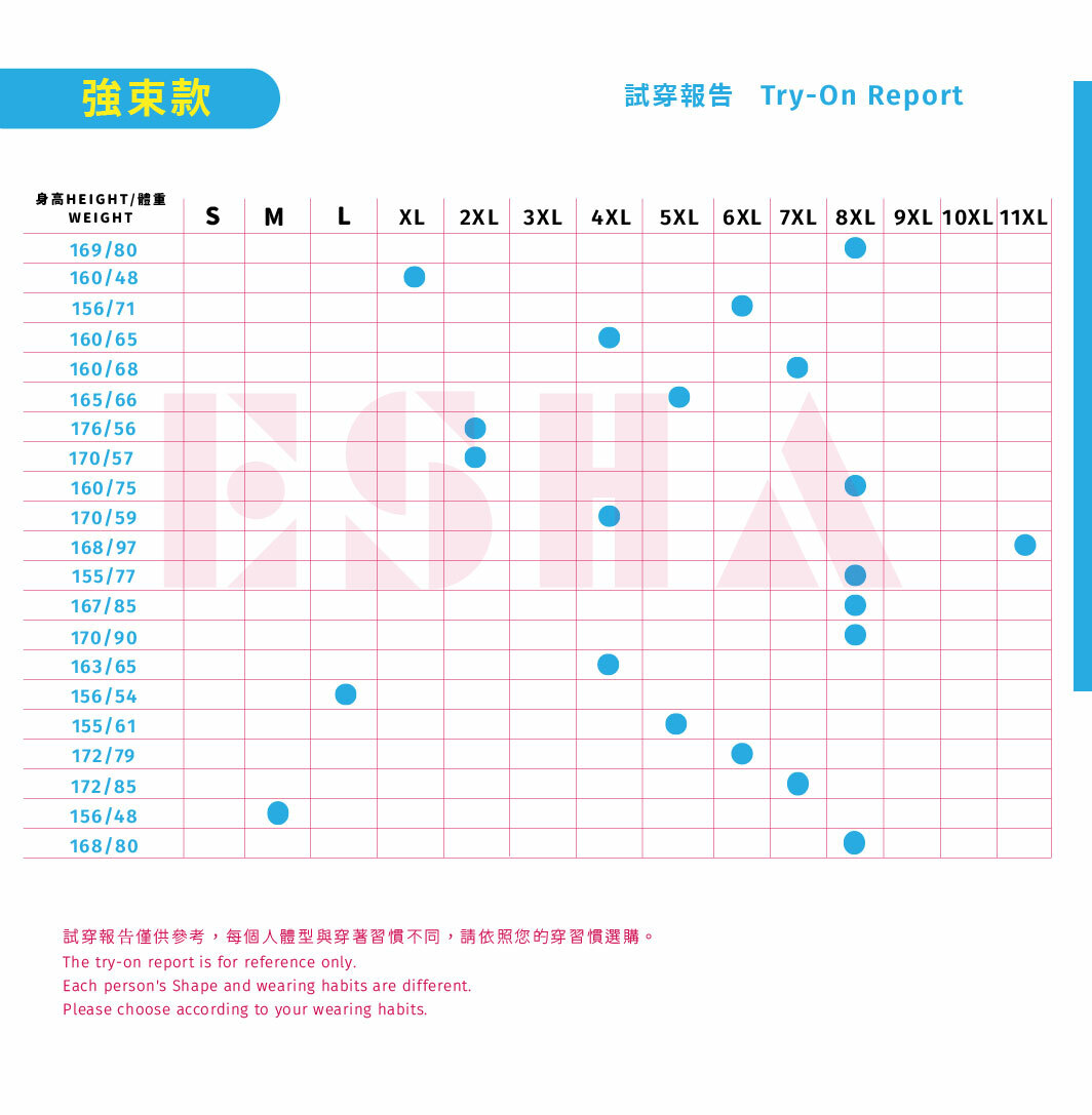此款效果好,較無彈性,建議尺寸可大一到兩個尺碼,毎一尺碼差距2CM,魔鬼氈有5-7CM可做調整。